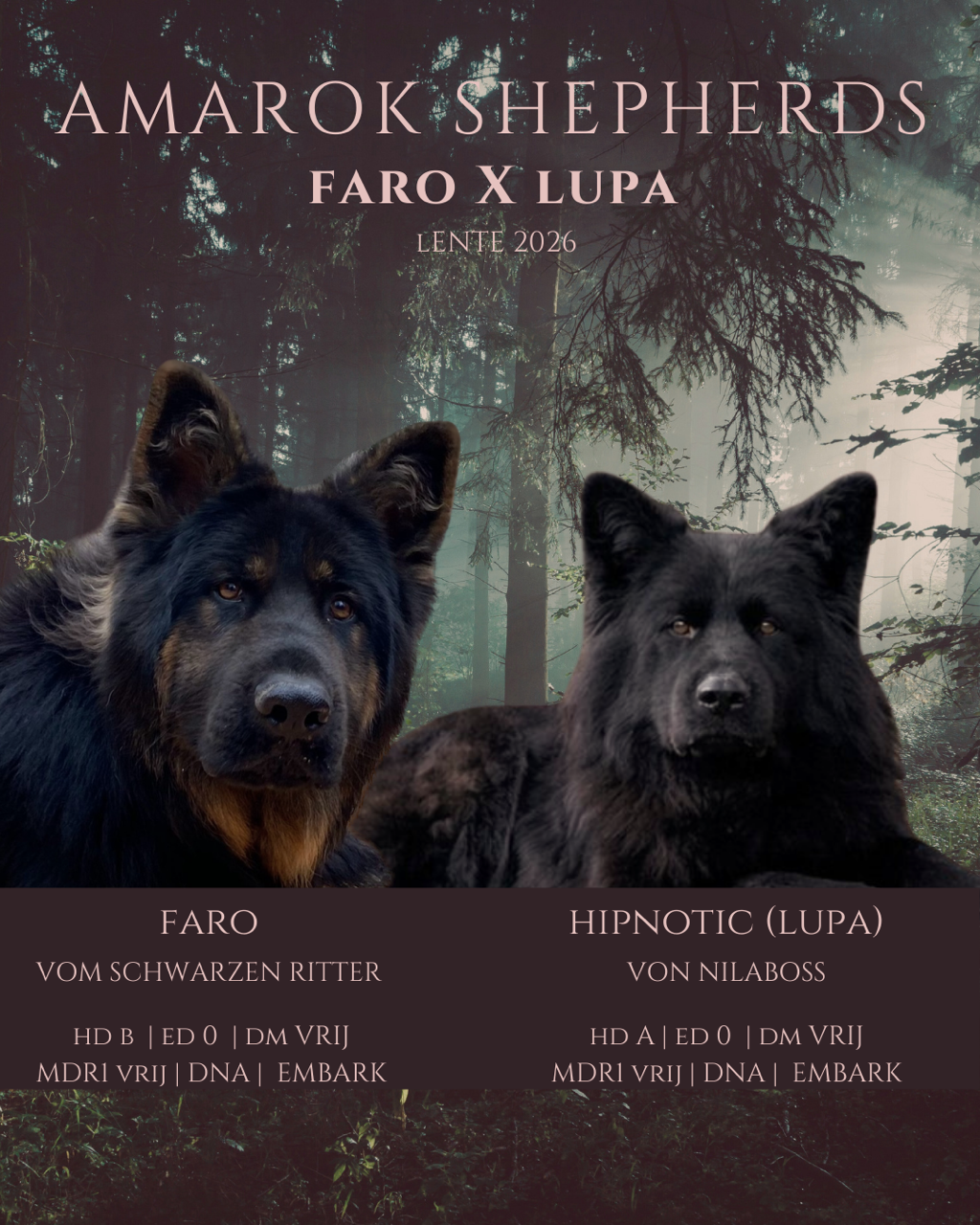 Op 28 maart is Lupa bevallen van 8 pups ( 3 reutjes en 5 teefjes). 6 zwart/bruin en 2 zwartjes.